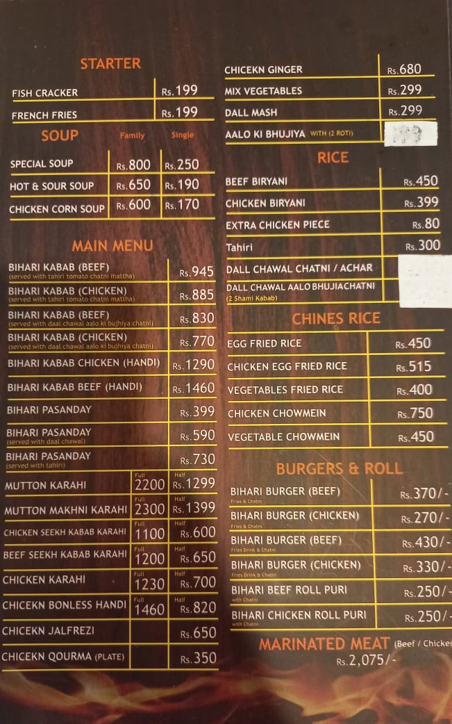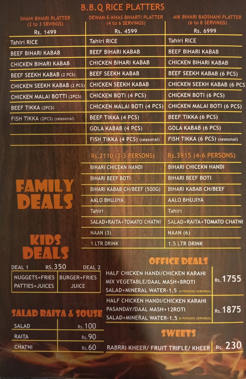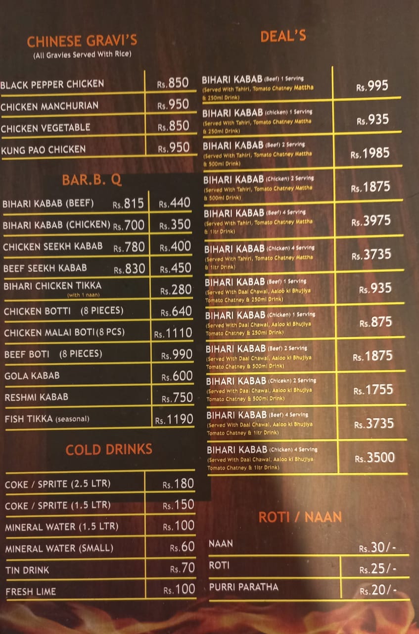 | Restaurant Type | FastFood Chinese Desi Biryani/Palao Roll Paratha |