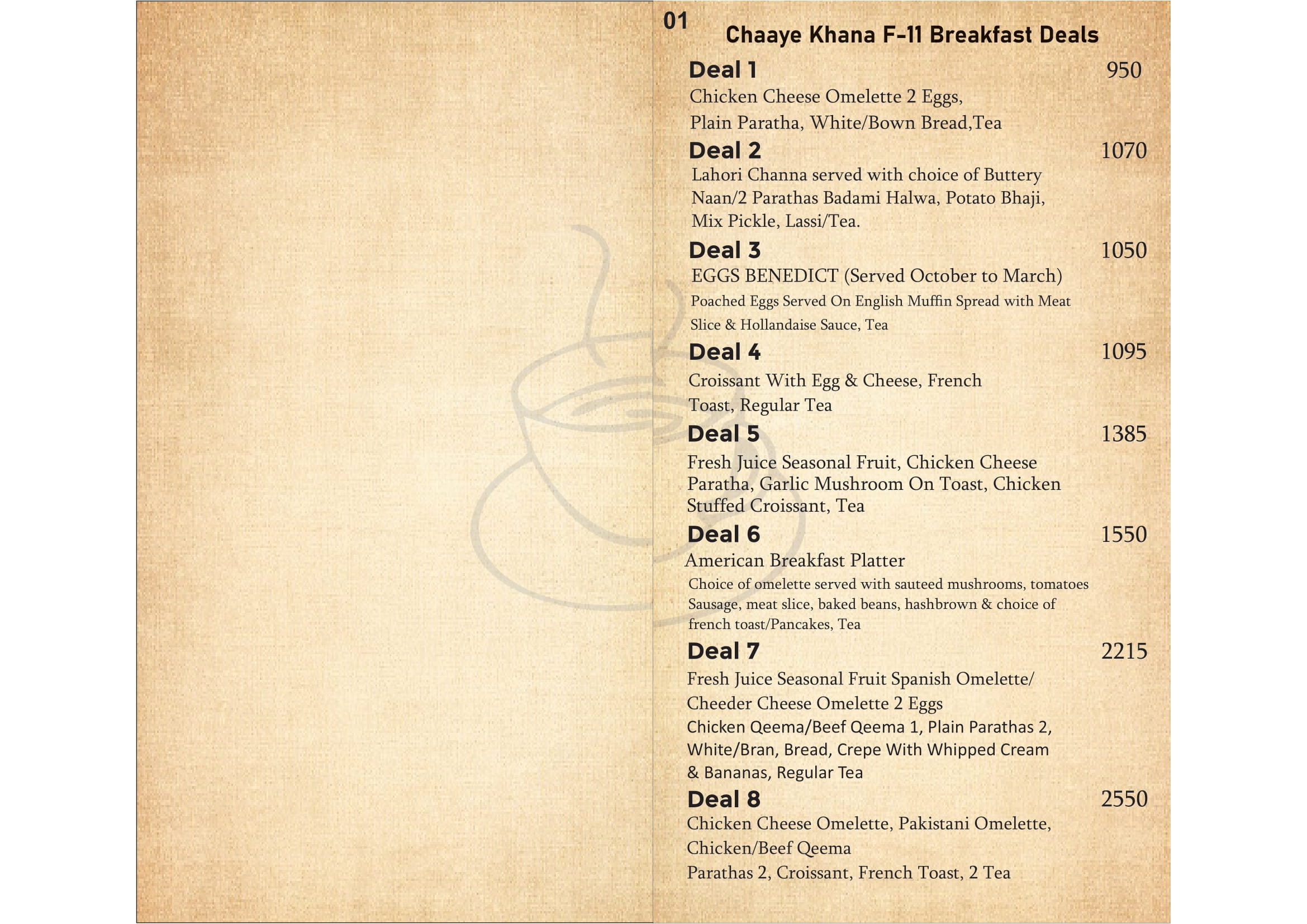 | Restaurant Type | FastFood Chinese Desi Pizza Coffee Steaks Breakfast Dessert Beverage |