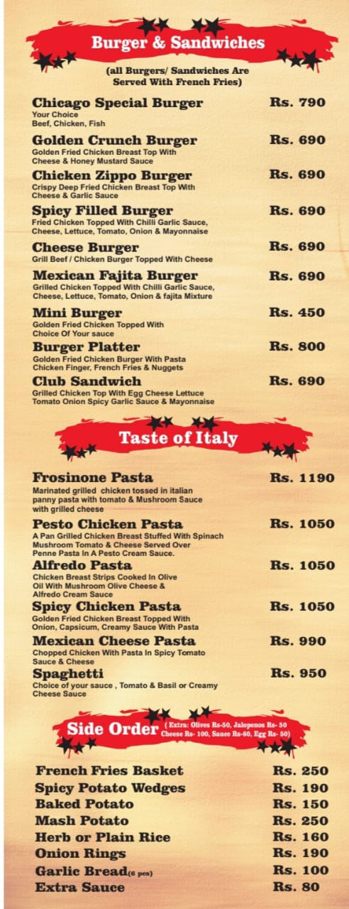| Restaurant Type | FastFood Chinese Steaks Dessert |