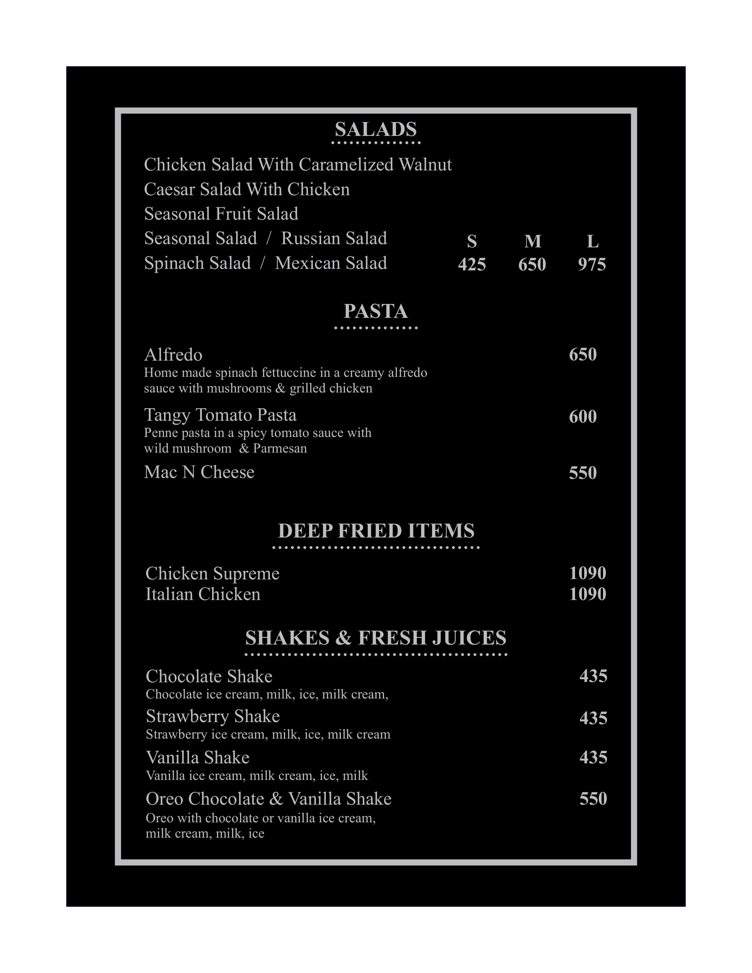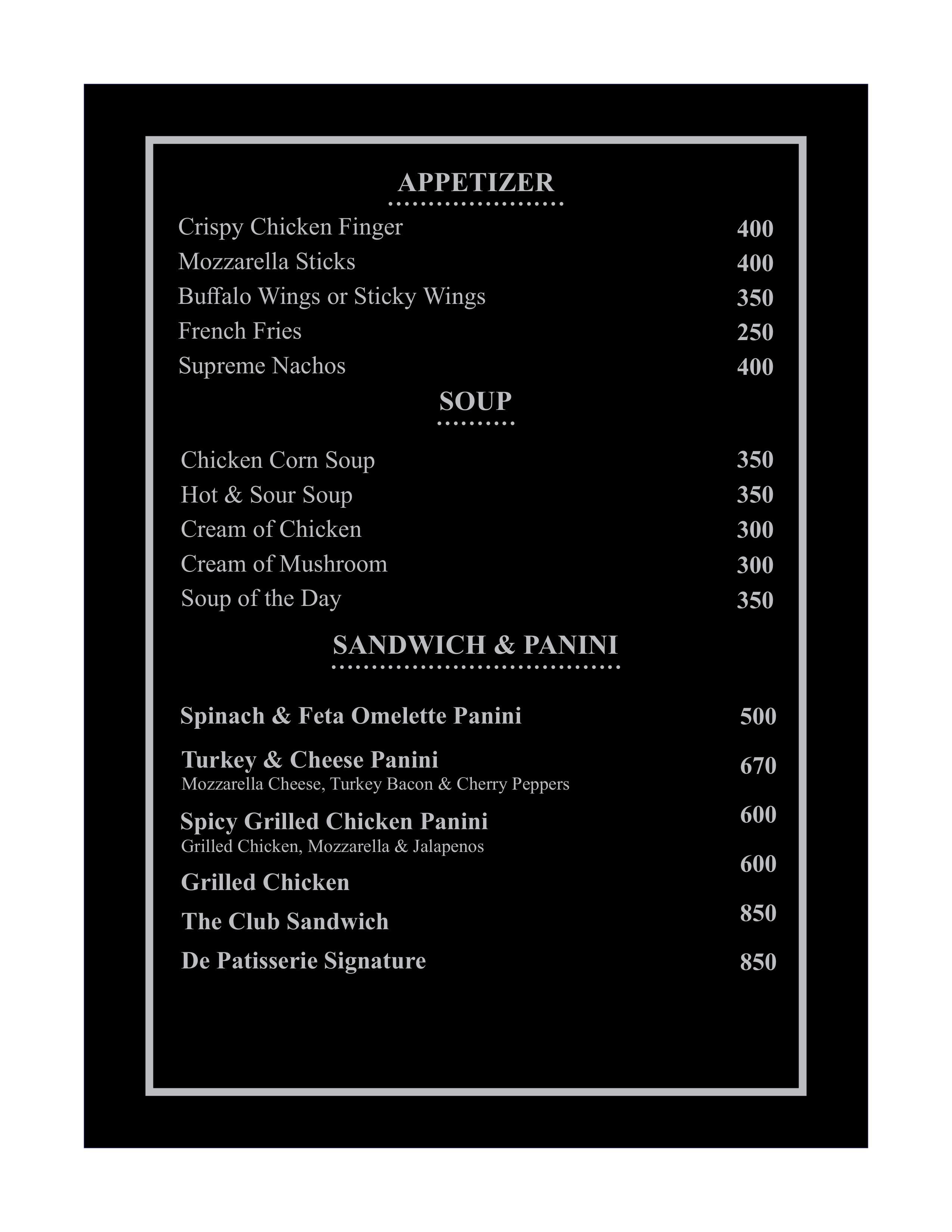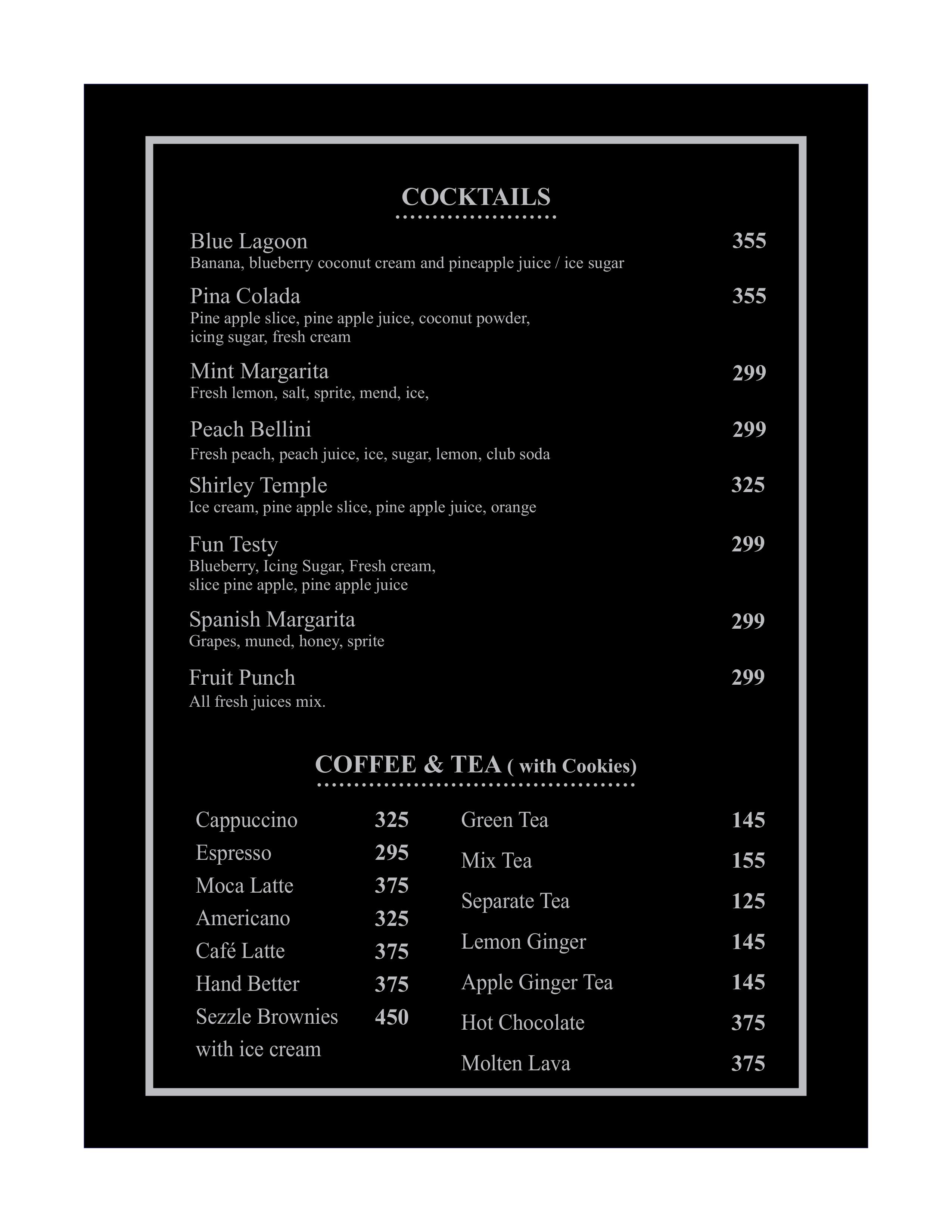 Restaurant Type | FastFood Pizza Coffee Steaks Breakfast Dessert Beverage Pasta |