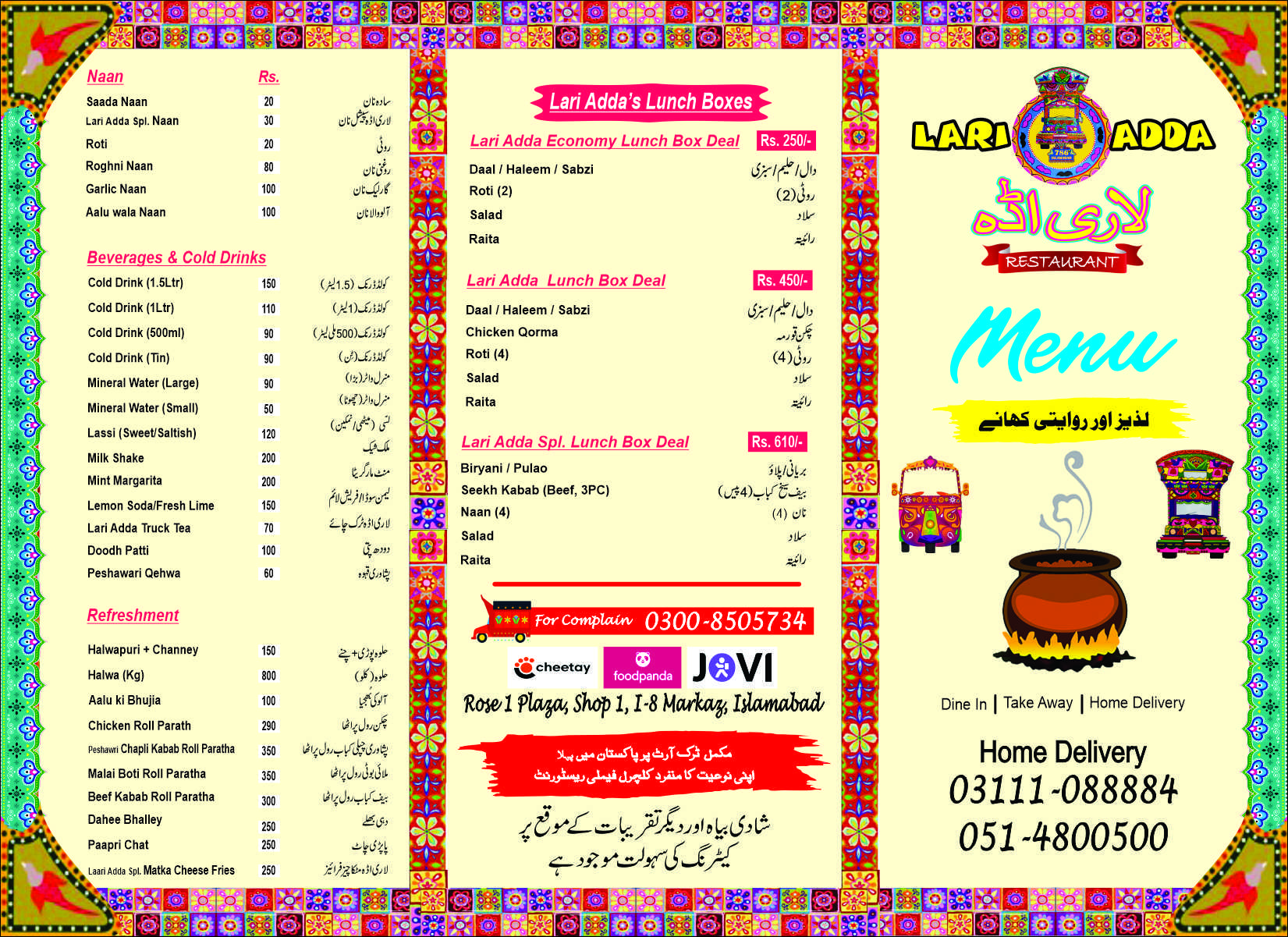 | Restaurant Type | FastFood Desi Biryani/Palao Breakfast Roll Paratha |