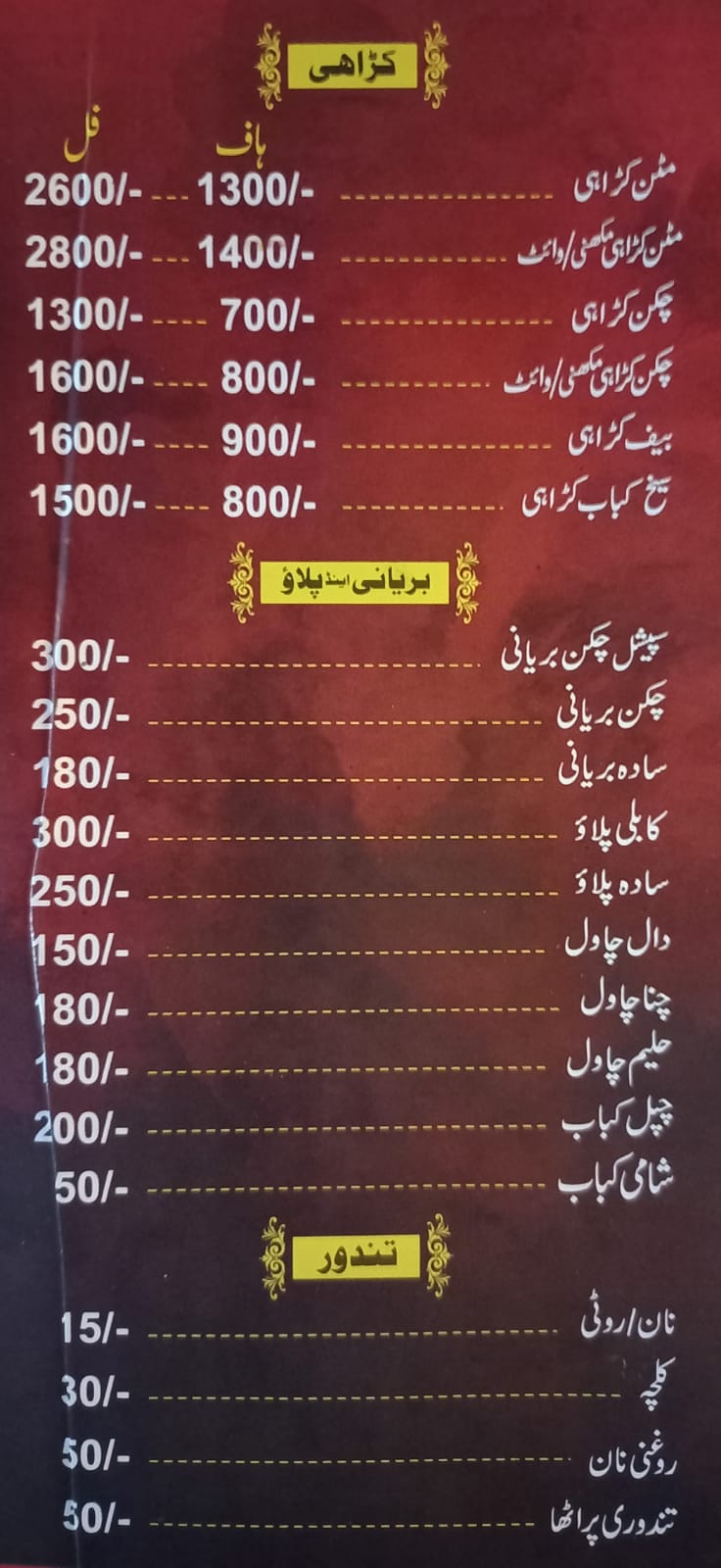 Restaurant Type | FastFood Desi Shinwari Biryani/Palao Breakfast Nihari/Paye |