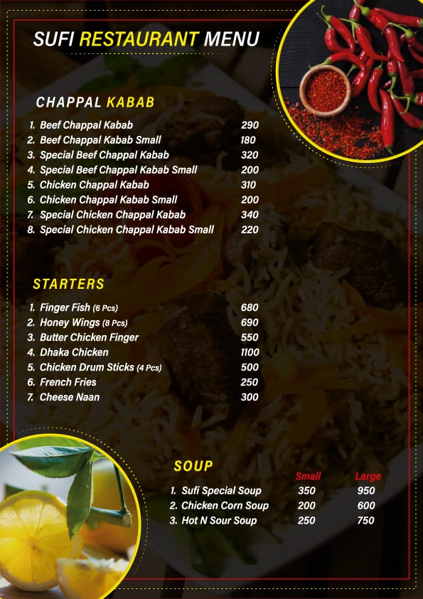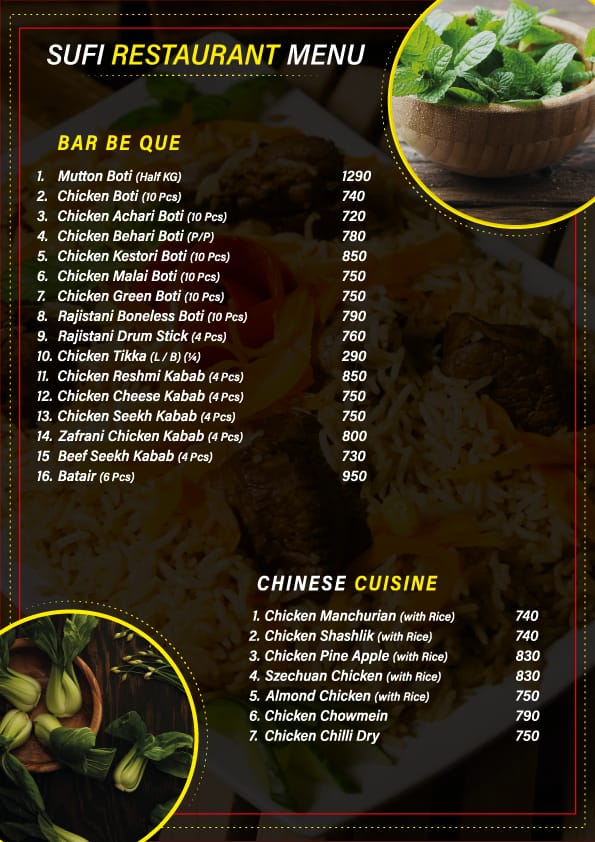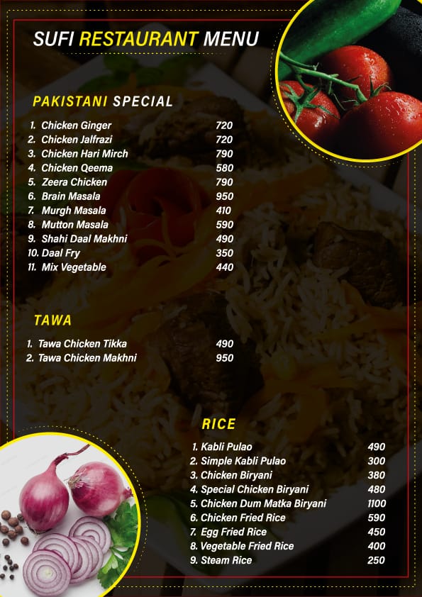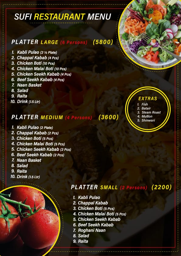 Restaurant Type | FastFood Chinese Desi Shinwari Biryani/Palao Coffee Steaks Dessert |