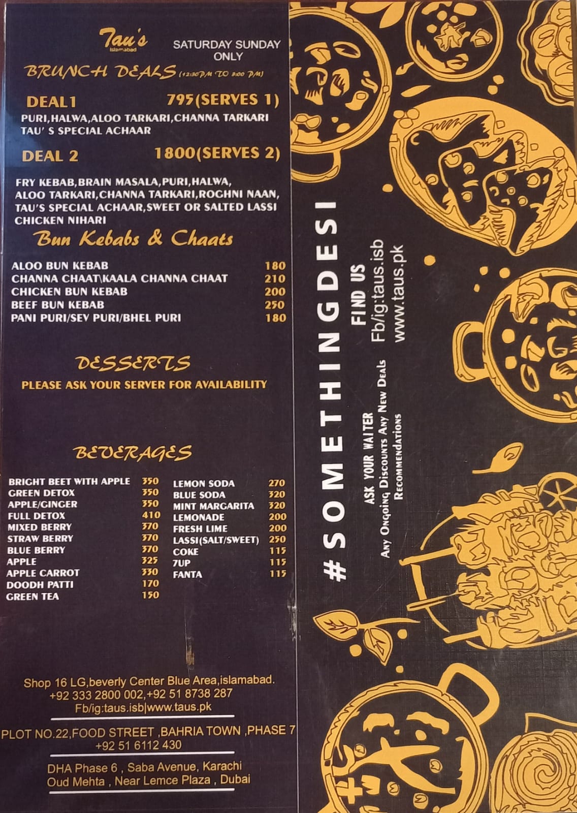| Restaurant Type | Desi Biryani/Palao Breakfast Nihari/Paye Brunch Roll Paratha |