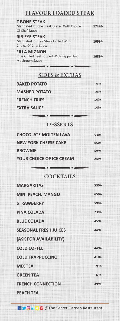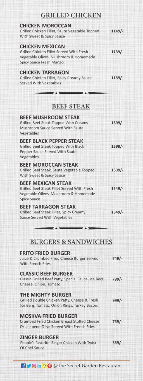 | Restaurant Type | FastFood Chinese Desi Biryani/Palao Coffee Steaks Dessert Beverage Pasta |